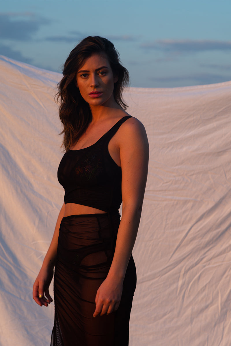 The creative heartbeat of our collection comes to life with our mesh; where delicately embroidered butterflies flourish across the fabric like paint on a canvas. Custom designed in New York City, the transparency of the mesh blurs the lines between skin, fabric, and motif and directly implicates the body into the art of the design.