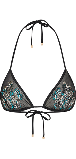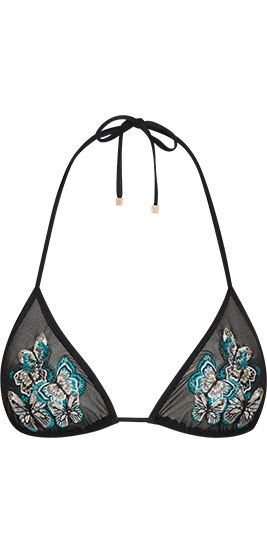 Black $150Sweet simplicity. The timeless Monarch triangle string bikini top ties at the neck with thin adjustable ties at the back. Produced and embroidered in New York City.