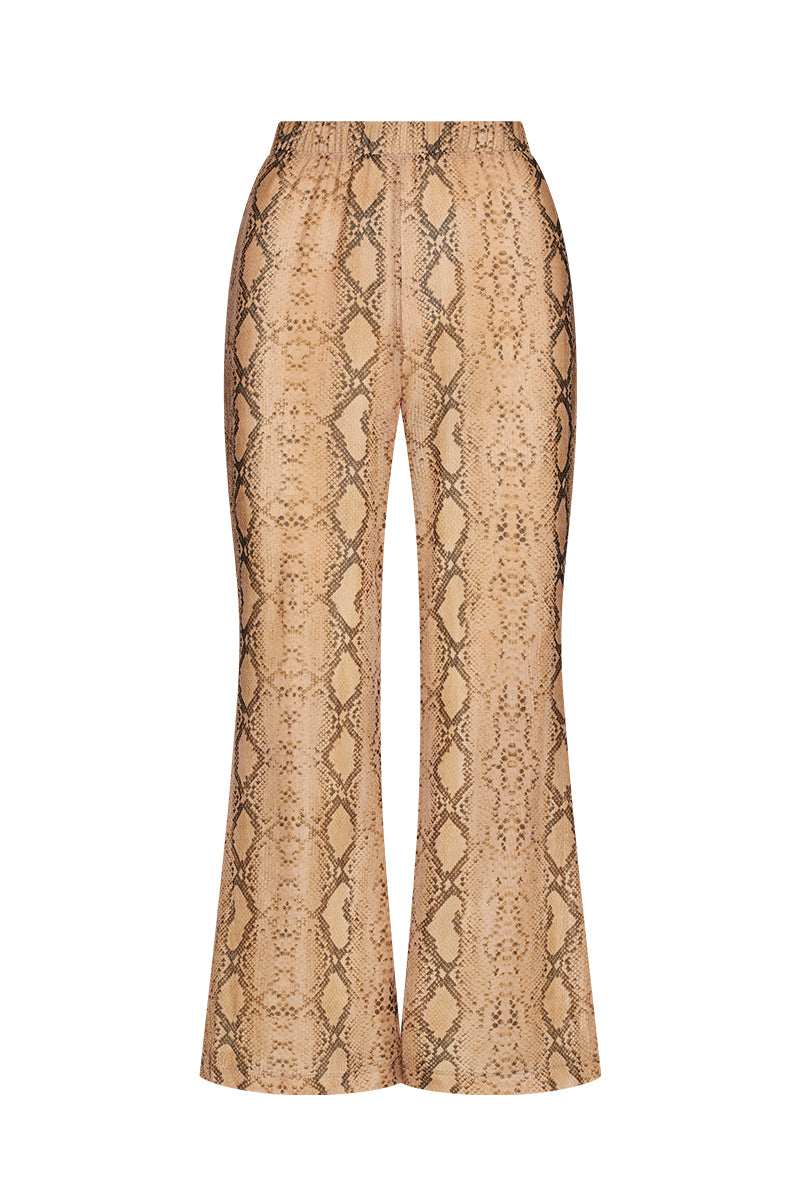 Garden Snake Mesh $185Muse mesh pant in garden snake mesh. Made in a slim fitting elasticated waist with a wide leg. Double layer mesh fabric with nice stretch and just enough coverage. Designed and produced in New York City.