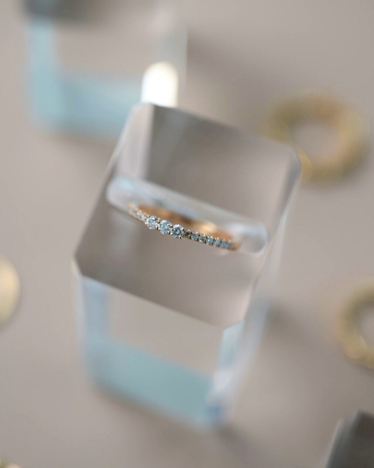 A delicate 14K rose gold ring featuring three larger diamonds set along a fine, minimal band. Soft, feminine, and timeless, this piece adds a gentle sparkle while keeping an understated, elegant look.