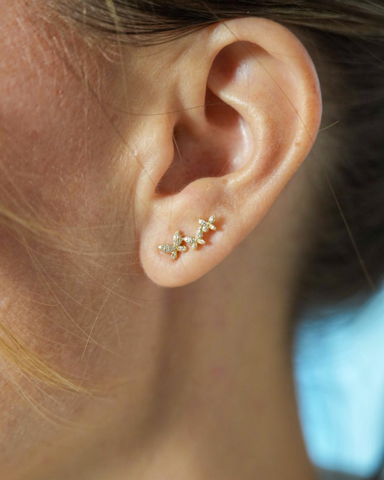 Triple Butterfly Diamond Ear Climbers