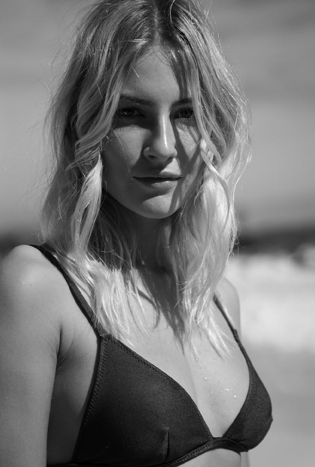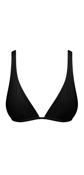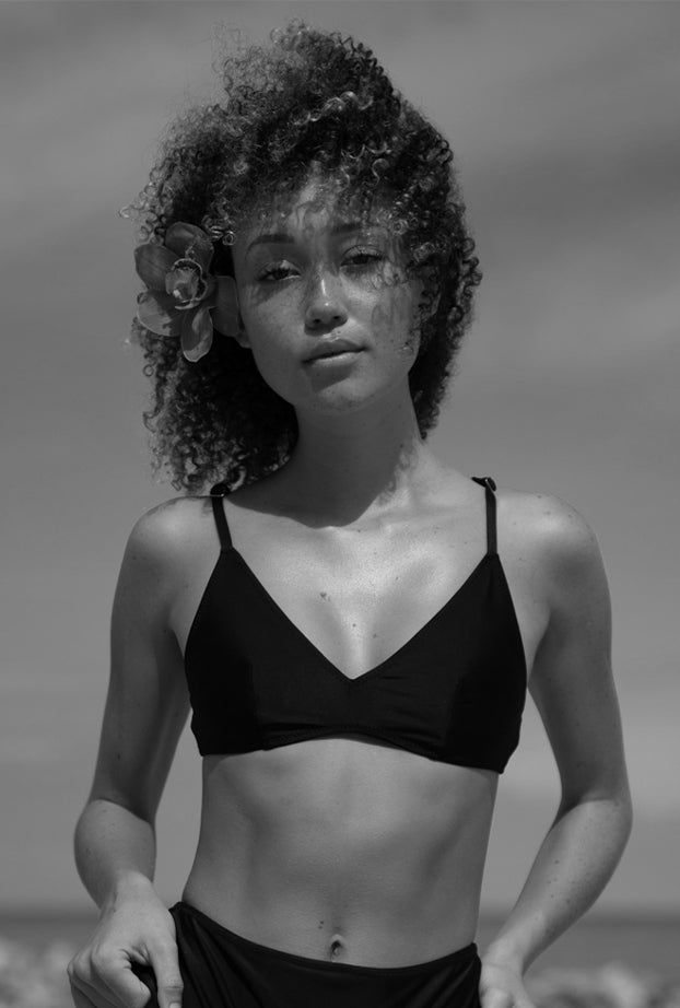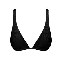 Ready for an impromptu adventure? The Voyager bikini top offers a strong but simple silhouette, complete with a banded triangle bikini top with adjustable straps and hook back closure. Produced in New York City. This style runs small. We recommend you choose one size larger.