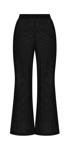 Muse mesh pant. Made in a slim fitting elasticated waist with a wide leg. Double layer mesh fabric with nice stretch and just enough coverage. Designed and produced in New York City.