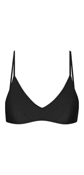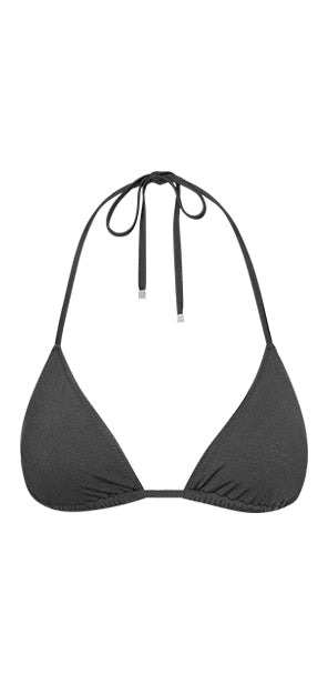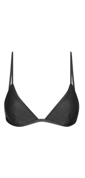 Sweet simplicity. The timeless Monarch triangle string bikini top ties at the neck with thin adjustable ties at the back. Produced in New York City.