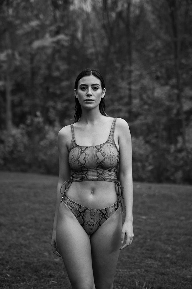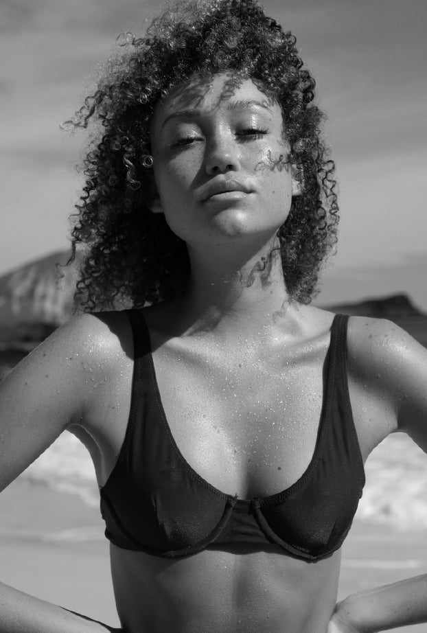 Odyssey bikini top. Made with a square neck and elongated bra fit. Designed and produced in New York City.y.